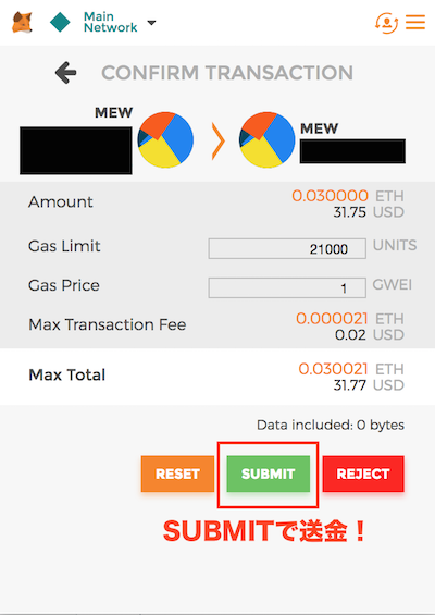 『SUBMIT』で送金完了!